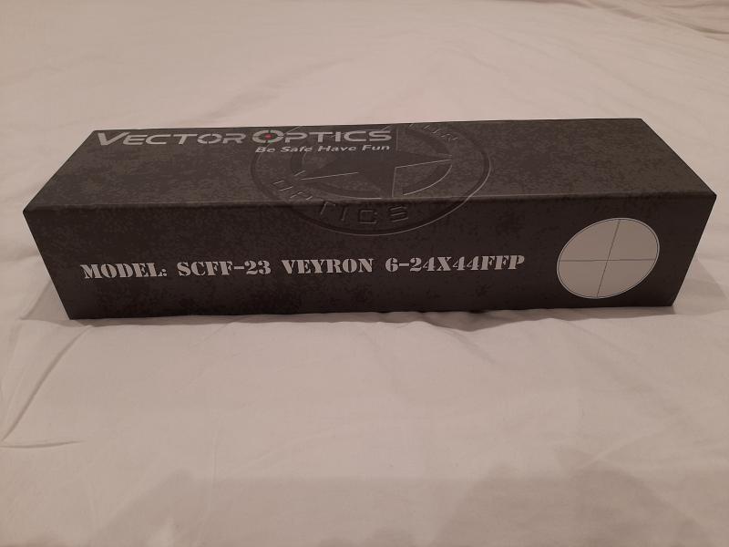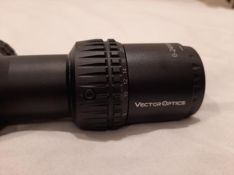 Vendo visor Vector Optics Veyron 6-24×44 FFP comprado en Aliexpress en Septiembre y recibido el 26 de Octubre. Solo probado el fin de semana pasado en una carabina pcp. Se caracteriza porque es muy compacto, pequeño (30 cm) y ligero (550 gr). Lo vendo precisamente por eso, le viene demasiado pequeño a mi carabina. Ideal para carabinas tipo bullpup y disciplinas de FT y HFT.