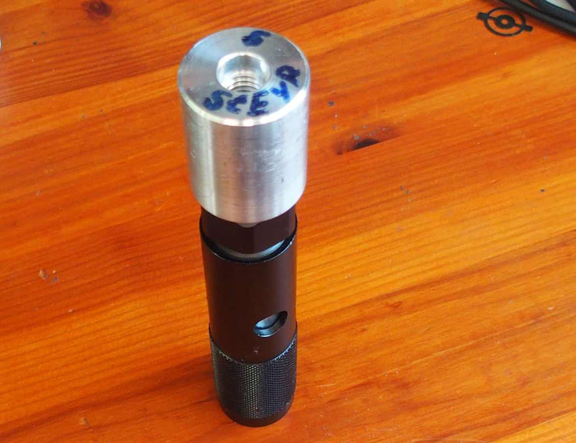 Como ya no tengo ninguna Steyr a CO2 ofrezco este adaptador alemán para usar las pequeñas bombonas de 12 gr. (no caducan y aguantan perfectamente una competición completa)