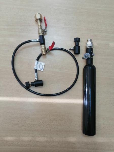 Pongo a la venta botella sin estrenar de 0.5 litros con regulador y válvula de llenado desde botella principal.