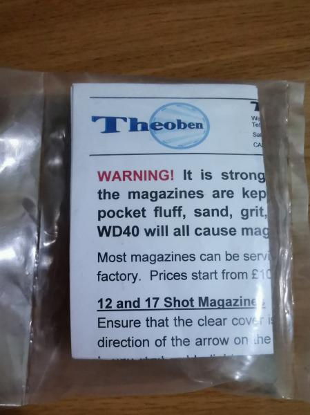Pues eso, pongo a la venta este cargador nuevo y sin estrenar Theoben Rapid cal. 5.5 esta en su bolsa de la cual no salió nunca, quedo por olvido en un armario, pido 55 Euros puesto en casa.