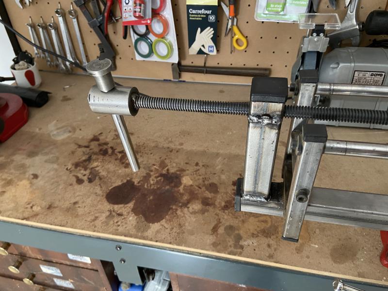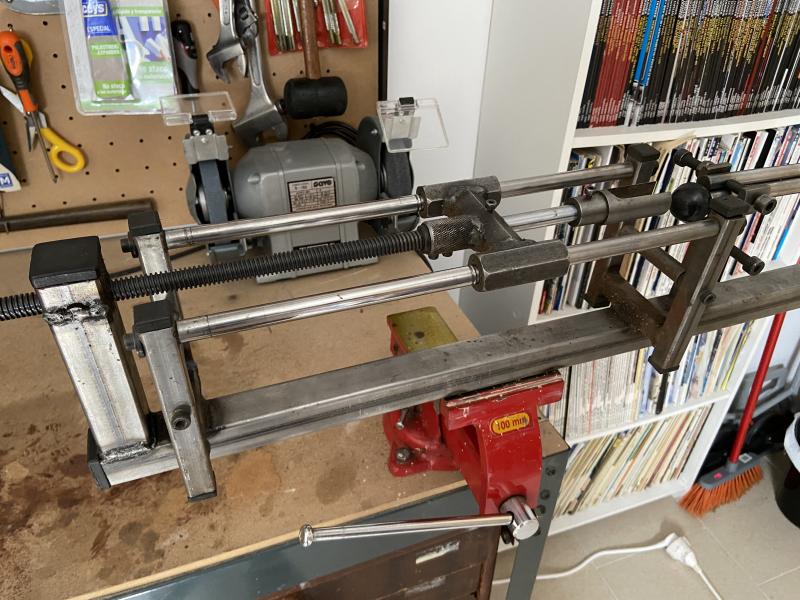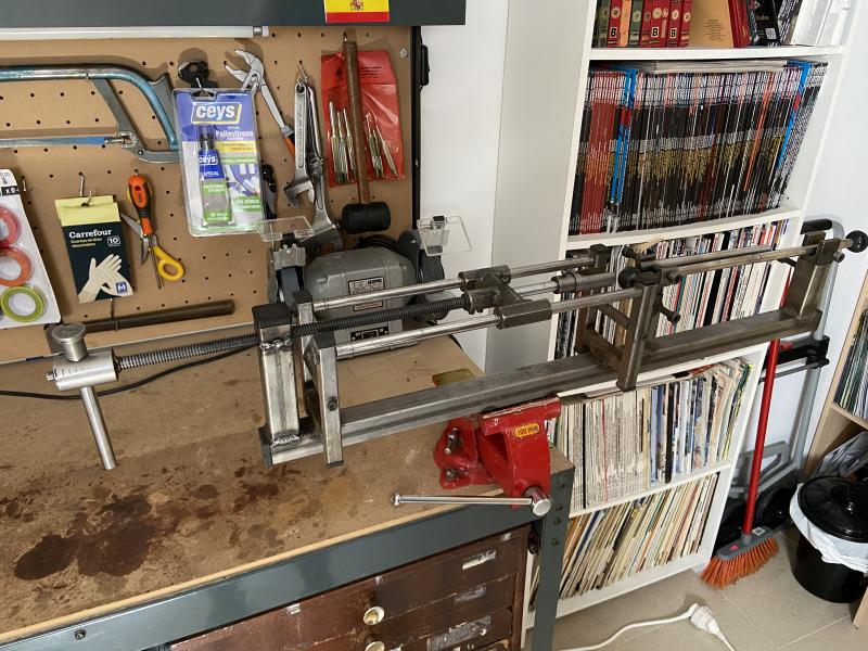 Vendo esta máquina hecha artesanalmente para quitar y poner muelles en carabinas de émbolo. Se fija a un tornillo de banco como en las imágenes y el funcionamiento es sencillo. Con bocacha especial para empujar el muelle y poder sacar el pasador que hace de tope en algunos modelos, y otra pieza intercambiable que cumple la función de empujador del muelle para meterlo.