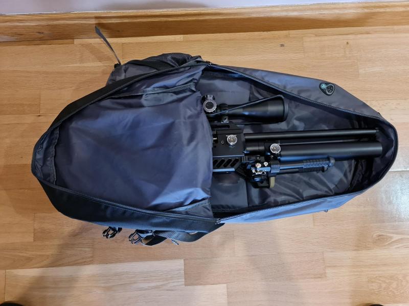 Con ella regalo la culata marca Hogue, el bipode (aun sin estrenar porque las dos veces que se ha usado ha sido con saco), y el silenciador Lobo. Tambien se regala mochila donde entra la carabina plegada.
