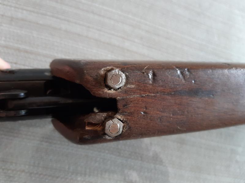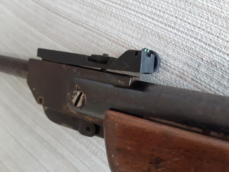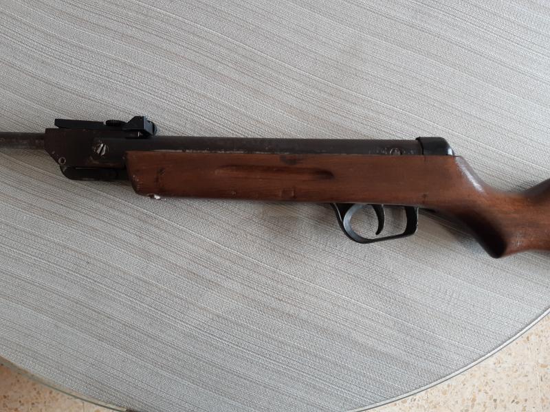 Necesita un poco de restauración y el disparador no retiene el muelle cuando se comprime, debe tener la pieza interior de la retenida defectuosa. Los hierros y la madera se hallan en buen estado y sin polillas. El alza se le puso nueva.