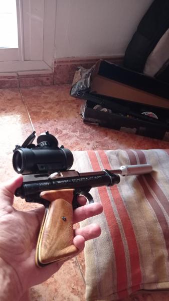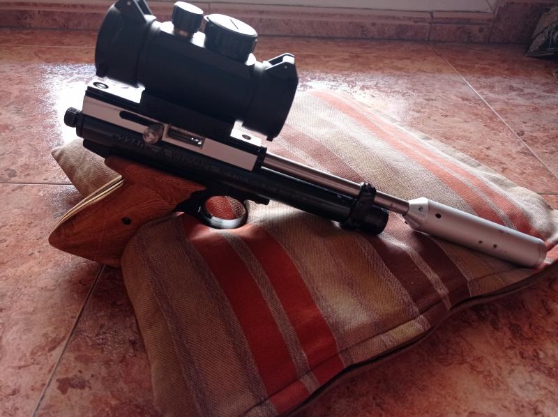 Vendo una de mis pistolas favoritas es un Crossman 2240 de 5,5 cal .Tiene varias mejoras como : tornillo para cambiar de potencia( va entre 8-14 j) culatin plegables, silenciador,cañon cambiado y muchas más ... Puedo asegurar que es una maravilla , lo vendo para hacer caja para otra carabina.Esta tuneado por un chico de Pontevedra y está echó a conciencia.El visor de punto rojo va incluido .La pistola se compró nueva en 2020 .Doy prioridad a los tatos en mano ,la pistola se encuentra en Almería y se puede probar sin compromiso.Para ponerle un defecto : a potencia máxima los botella de 12 gr de CO2 se acaba muy rápido.(35 disparos).El silenciador es pintado ahora en negro con vinilo líquido .El precio es de 170€.Tiene cachas original y de madera noble.Para más detalles en estoy a vuestra disposición.