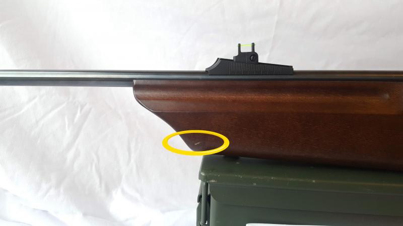 Tiene dos marcas en la madera (ver fotos) y alguna rayita de las monturas del visor. Por lo demás impecable, muy precisa. Adjunto imágenes.