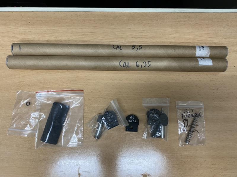 Ahora mismo esta en calibre 5'5 pero tengo el cañon con el intruductor, cargador y bandeja monotiro de los otros dos calibres, 4.5 y 6'35.