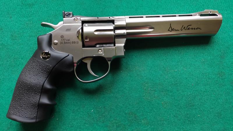 Buenos días vendo por no usar revólver Dan Wesson 6” ASG plata 4,5 mm BBS CO2