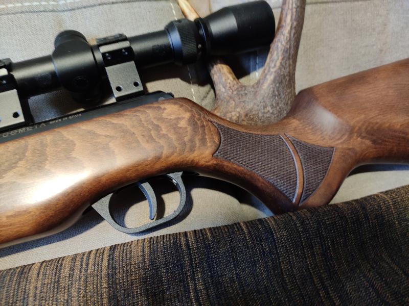 Muy bien cuidada ,con una madera preciosa con muchas betas , con silenciador, con muy buena precisión y potencia.
