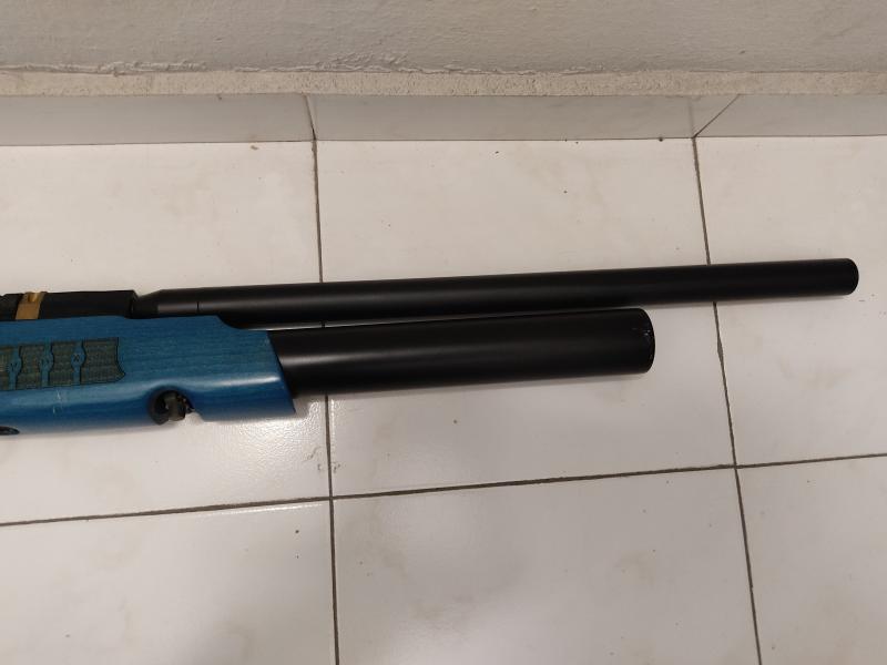 En calibre 5, 5 mm. Madera de color azul. Lleva una bomba Hill. Se envía. O recogida en mano en Vizcaya.
