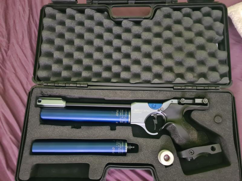 Se vende hammerli ap40 con cacha talla M zurdo en perfecto estado de funcionamiento y con 2 botellas, una esta en perfecto estado y sin perdidas y la otra pierde aire por la valvula.