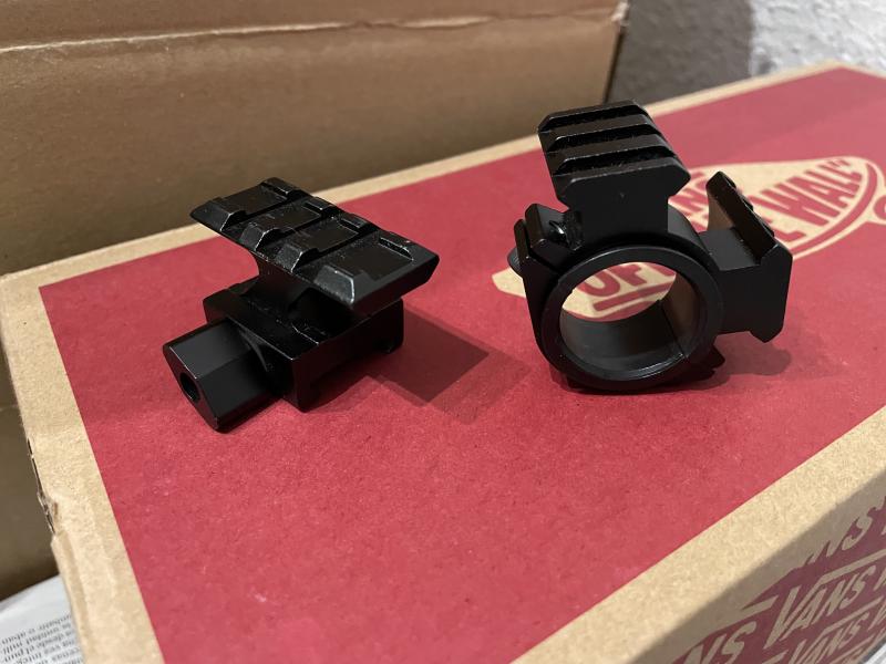 Izquierda para montura en raíl picatinny alto 25 mm , la de la derecha para montar en tubo de 25,4 y de 30 mm , 5€ los 2 más envio si hubiera +-5€ , Madrid