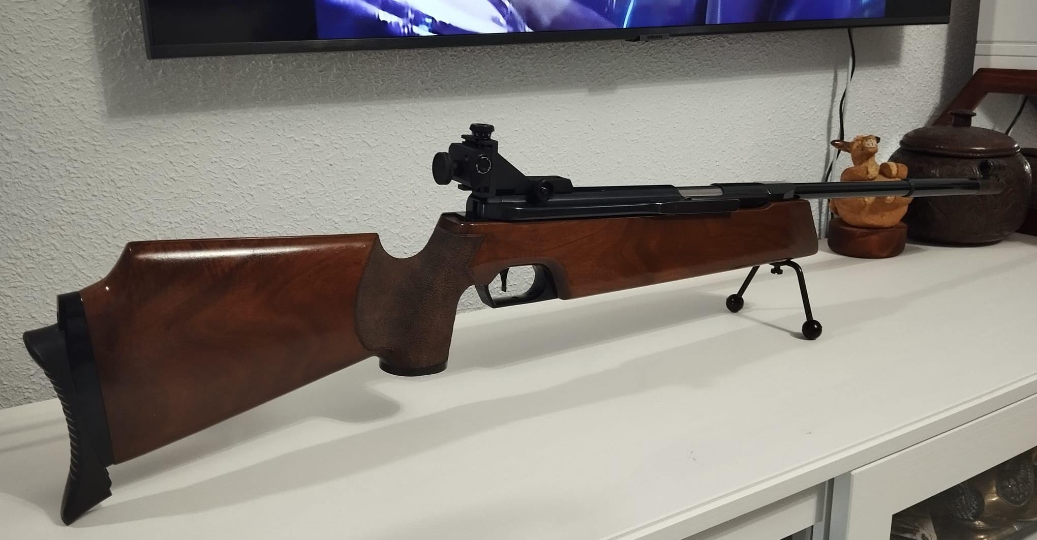 Feinwerkbau 300s, la carabina se encuentra en muy buen estado con miminos signos de uso, el pavonado no presenta oxido ni desgastes apenas marcas, culata de nogal..... presenta mínimas marcas todas superficiales.