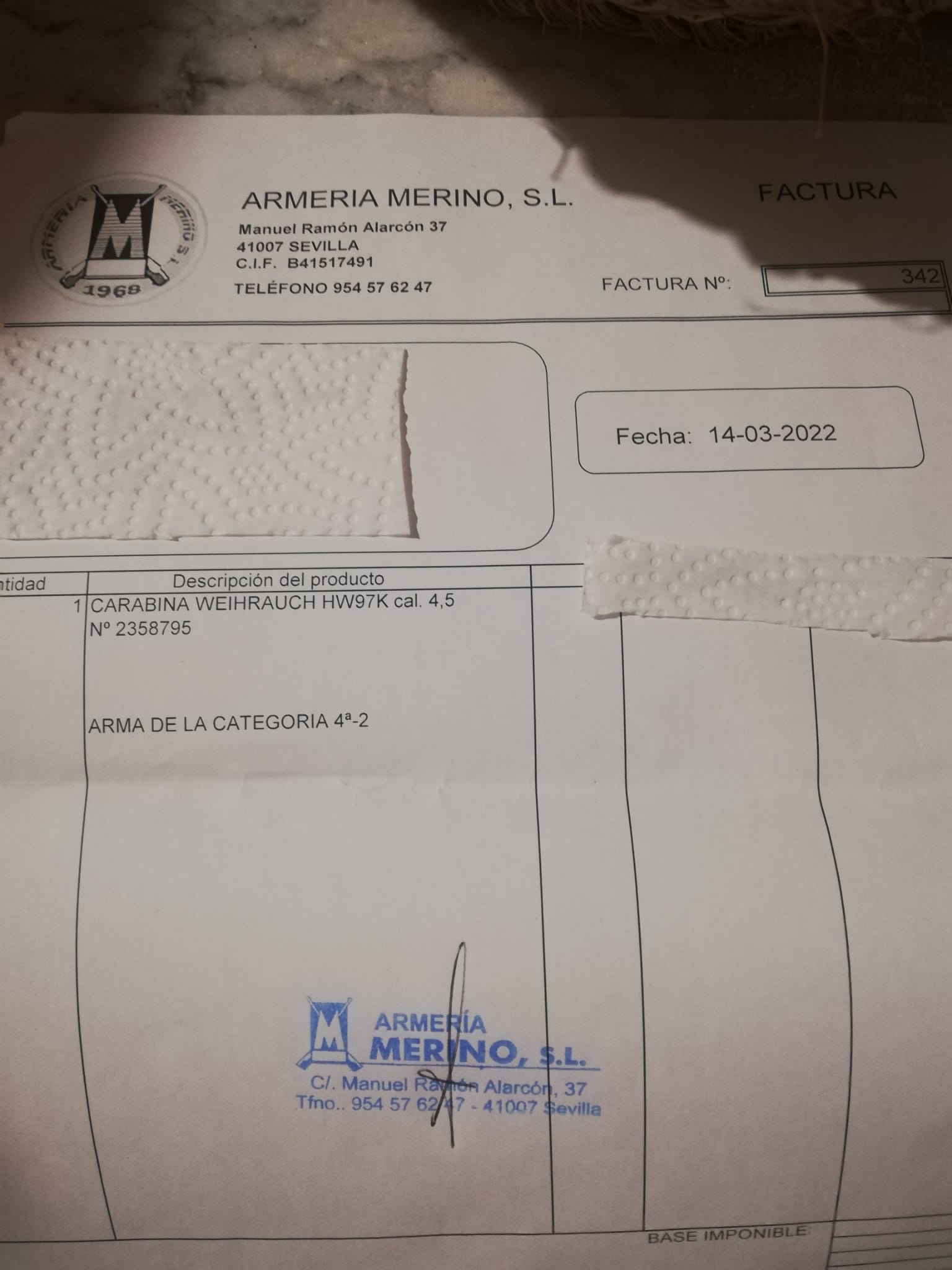 La carabina está en la provincia de Sevilla, se puede ver y probar, en el campo de tiro.