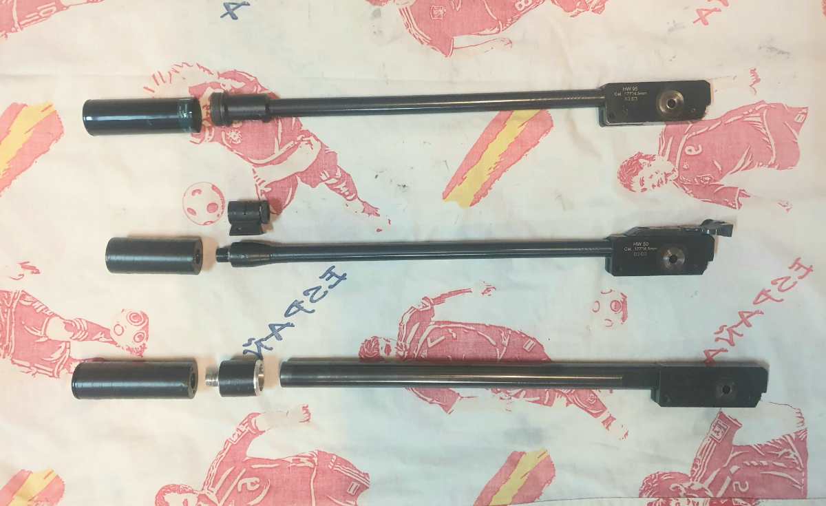 Cañon Weihrauch hw 50. Cal. 4,5. Con rosca para silenciador. Silenciador corto ( mide 7 cm y es CASERO ).