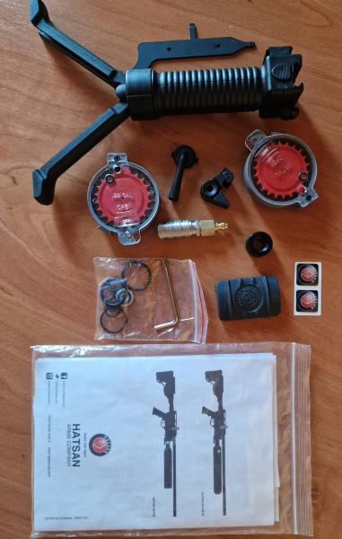Incluye todo lo que trae de serie. Maletin rigido, 3 cargadores de 21 disparos mas el monotiro, bipode de serie, juego llaves y orings, pico foster (el de serie más el macho necesario). Viene con sus instrucciones y factura.