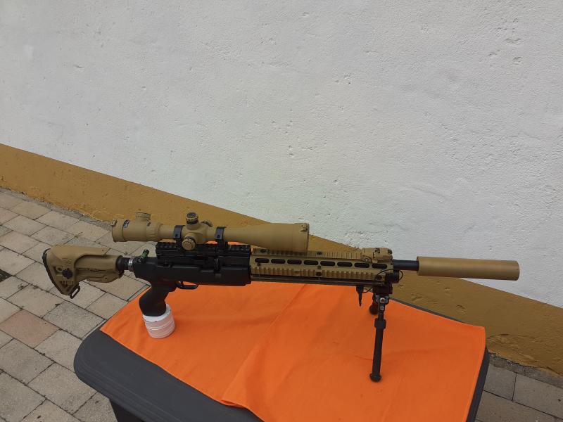 nuevas fotos. La he pintado en una color un poco mas "caliente", lle passa una otra alma. lo visor que va con la carabina es un VISION KING 8,5X25X50 , pintado en la misma color que la carabina.