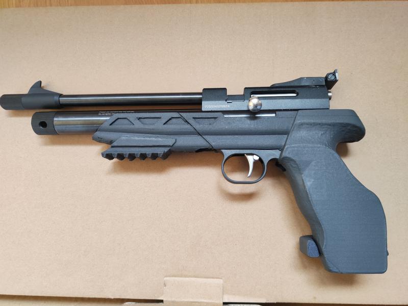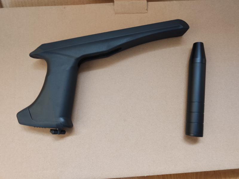 Consta de la Stinger cp2, pistola-carabina, una cacha impresa en 3d diestra tamaño m, una funda para llevar montada la carabina y 50 botellines de co2 de 12g.