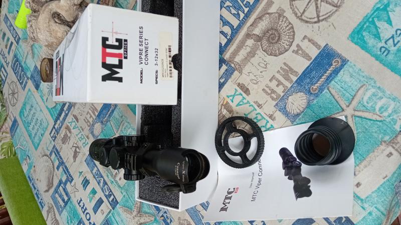 Vendo visor MTC Viper 3-12/32 reticula iluminada half mildot con monturas, ocular, rueda, instrucciones y caja.