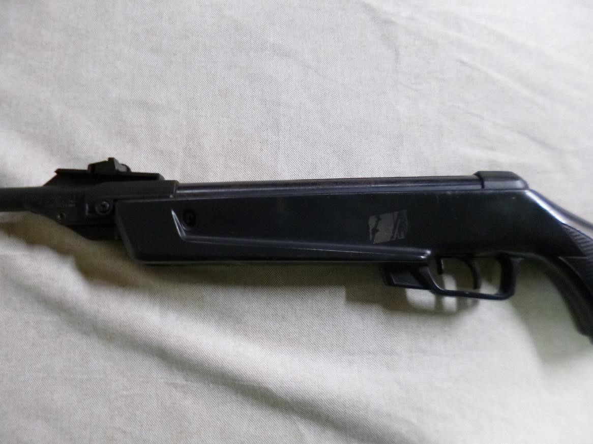 La primera es una Gamo delta cadet del 4.5 en polímero. Tiene todos los accesorios, muelle, zapata, punto de mira, alza. Lo único que le ocurre es que tiene el cañón taponado.