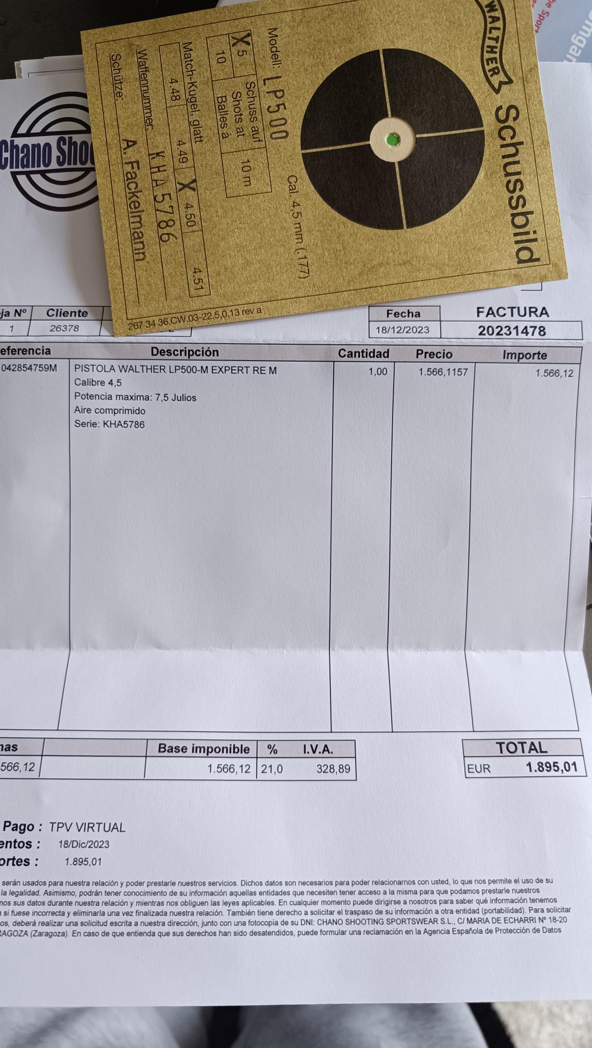 Vendo Walther LP500, totalmente nueva, solo se a tirado 30 disparos para centrarla, talla M. Comprada nueva en Chano tal y como se ve en la factura.