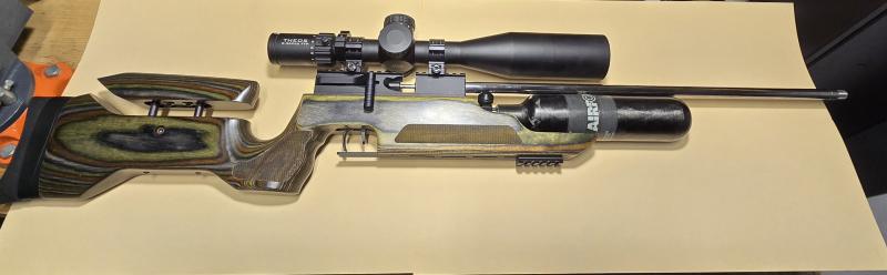 Vendo carabina PCP RAW HM1000x en calibre 5,5 mm con culata en madera laminada verde Camo.