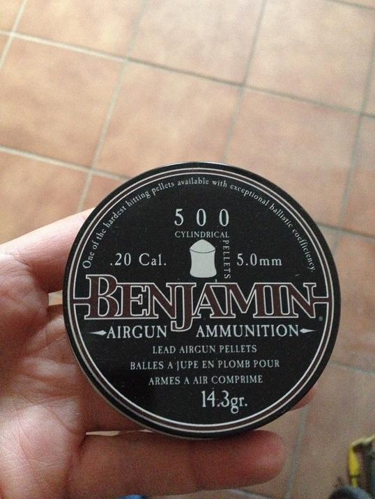 Va con caja, papeles y tres cajas de balines Crosman y Benjamín, una de ellas sin estrenar.