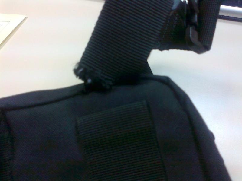 El caso es que no llegando a los cuatro meses de uso y habiendo cargado la bandolera con los "aperos" de trabajo oportunos, la sujección de la correa a la bolsa se ha descosido totalmente.