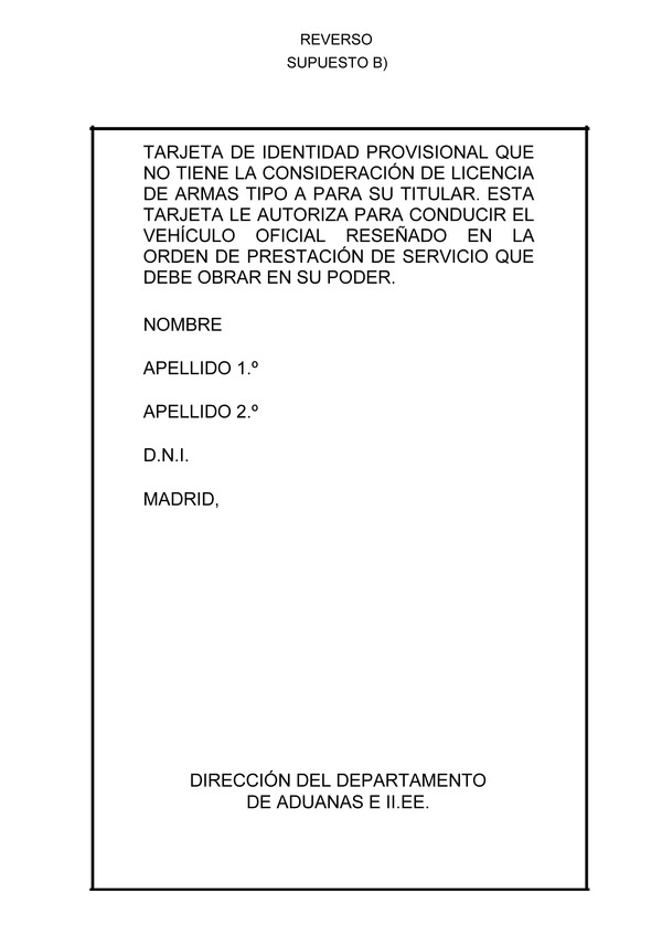 Parte posterior de la Tarjeta de Identidad Profesional de los Funcionarios del Servicio de Vigilancia Aduanera.