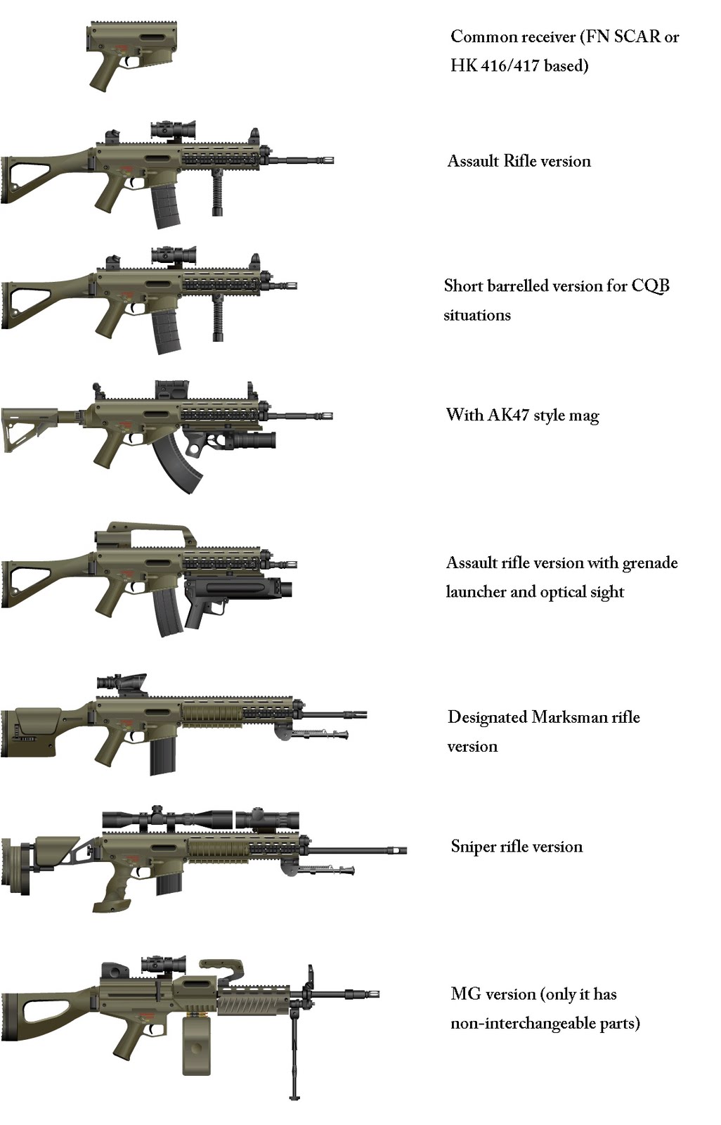 Y aunque no soy un experto ni muchísimo menos mi opinión personal, es que subsulies como el G36C con mayor calibre se acabarán imponiendo sobre los subfusiles de calibre pequeño. Otra cosa son las pistolas, eso si. Ahí es más difícil elegir, no vas a hacer una pistola de 5,56 ni mucho menos 7,62.
