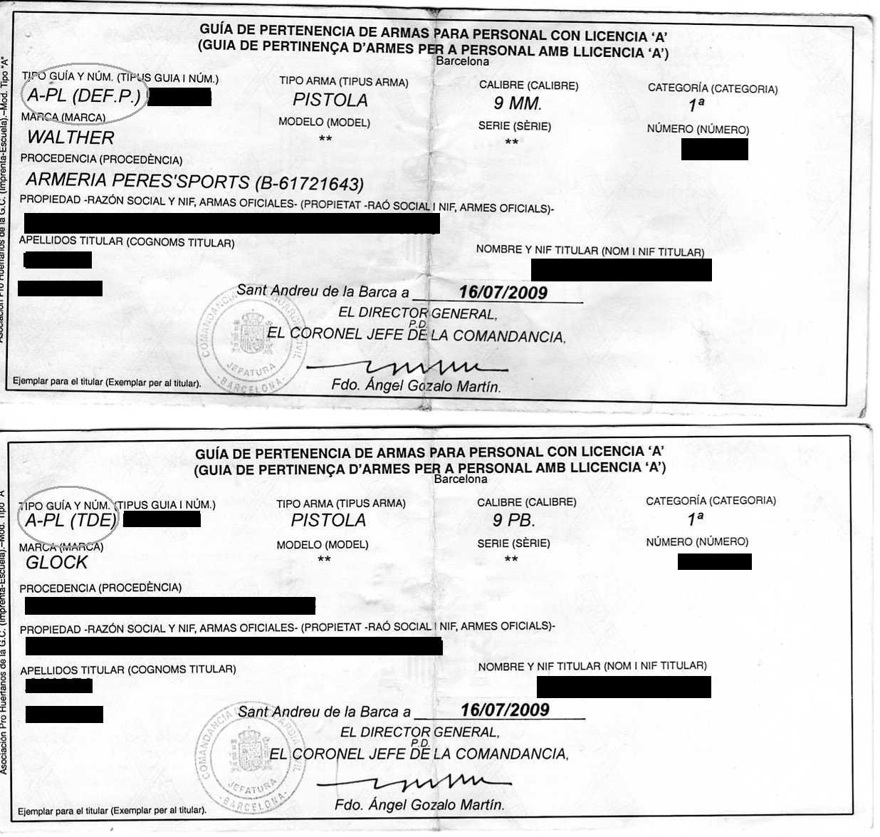 Y para muestra un botón os adjunto foto de las dos guias de pertenencia por la tipo A una defensa pers. y otra deportiva