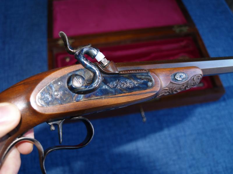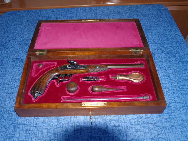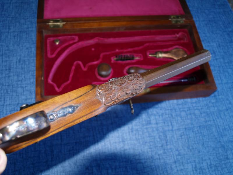 Vendo una Caja de duelo modelo de pistola, La Couture á Lyon Cal. 41 de lujo grabada tanto madera como 00