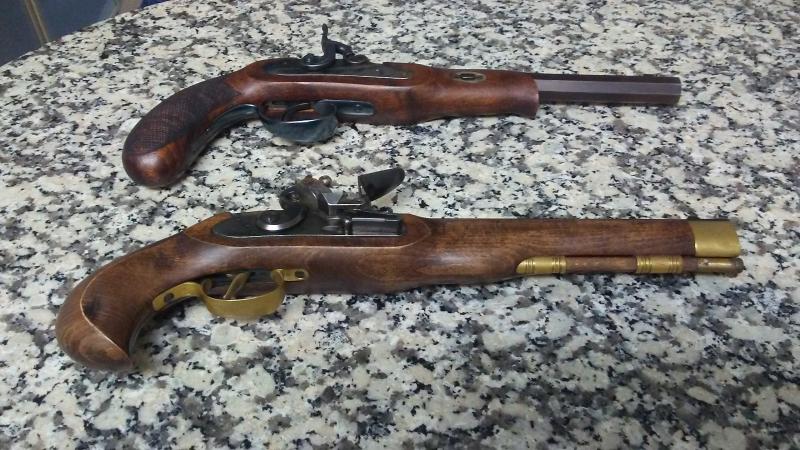 Hola. Vendo dos pistolas de Ardesa en calibre 45. Son una pionner de pistón y una Kentucky de chispa. La de chispa sólo se ha estrenado para ver cómo funcionan estas nuevas llaves de Ardesa. Están en muy buen estado, casi nuevas. Se venden conjuntamente (a ser posible). (Y las vendo para hacer caja, pues he conseguido un Shenandoah de chispa)