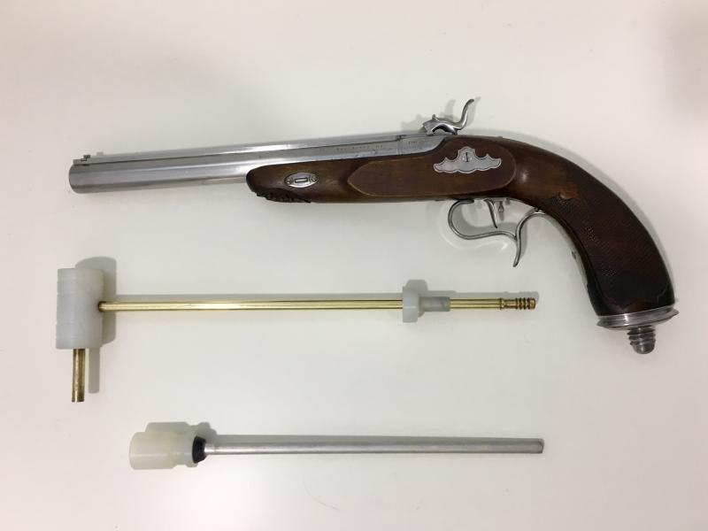 - Baqueta COMBI de latón para pistolas calibre .40 al .45. Varilla de 8 m/m en baqueta e iniciador corto y lavador-empujador de 9.