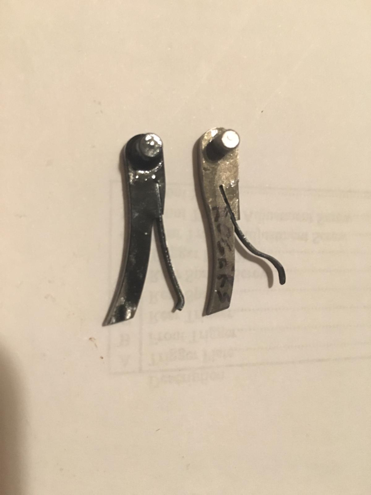 Se ve la comparativa con el original y la que tiene la patilla rota.