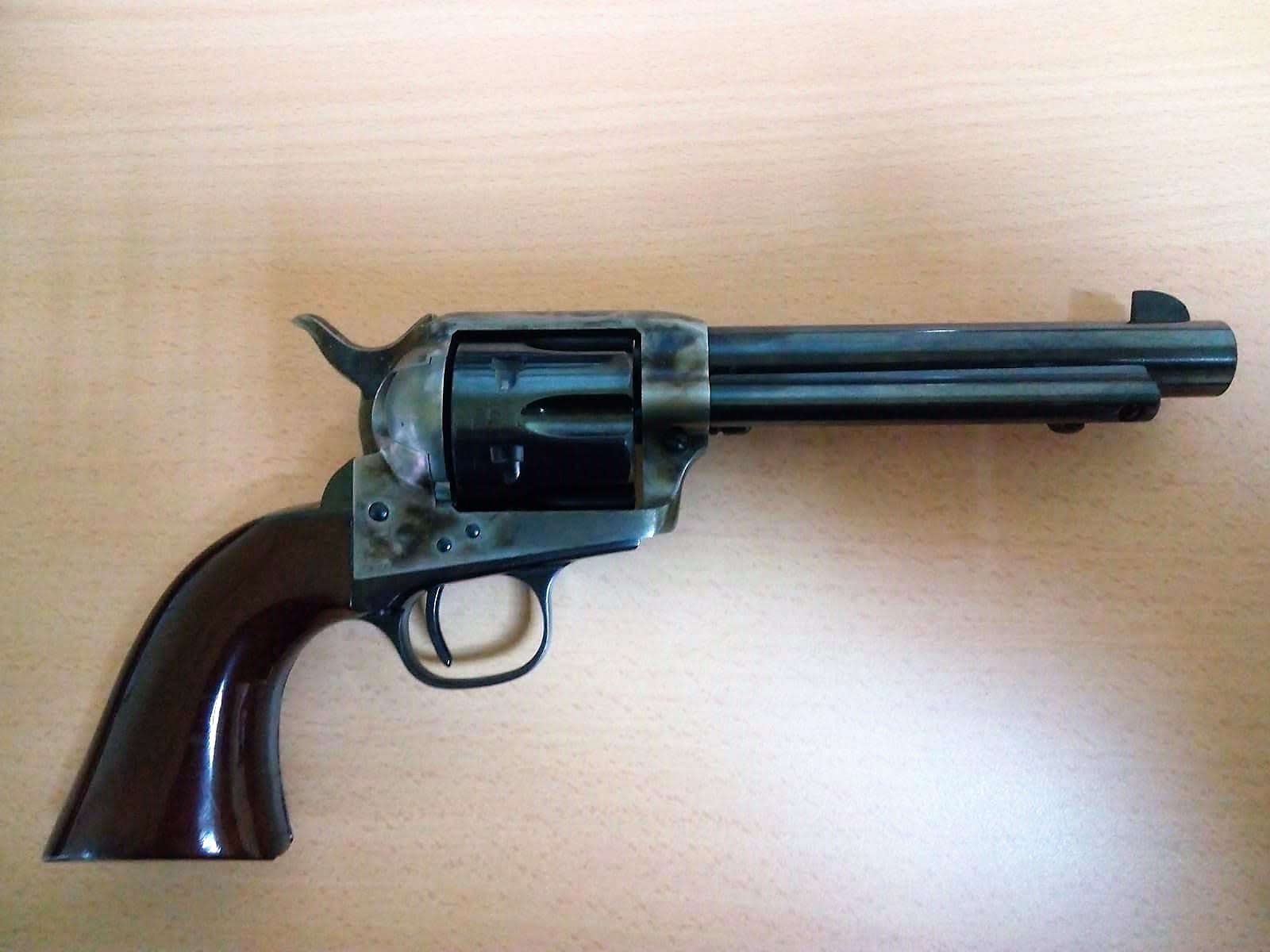 Un amigo vende este revolver Cattleman de UBERTI, calibre 44-40 metálico, cañón 4,75” (12cm), guiado en AE, con plomos y casquillos extras incluidos.