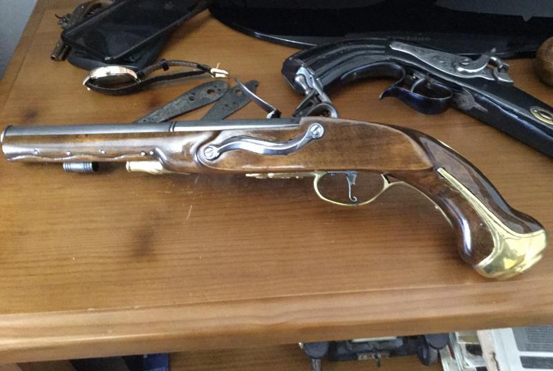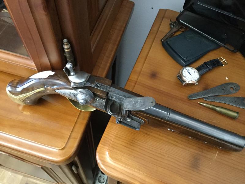Vendo pistola de Dragones, calibre 54, marca G. Madera de cerezo, llave de gran calidad, latones grabados, placa de cornamenta de venado en empuñadura. Incluyo baqueta que no esta en foto, En Libro de coleccionista. No cambios.
