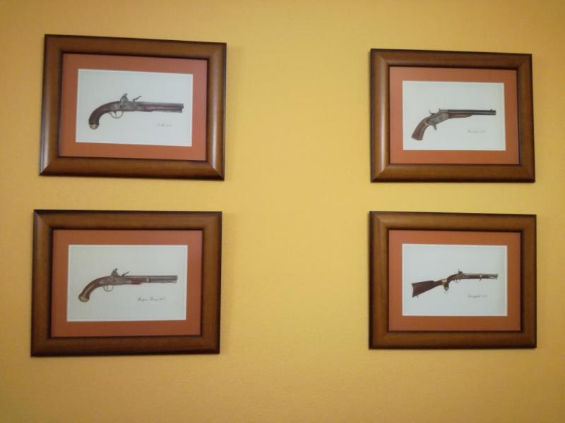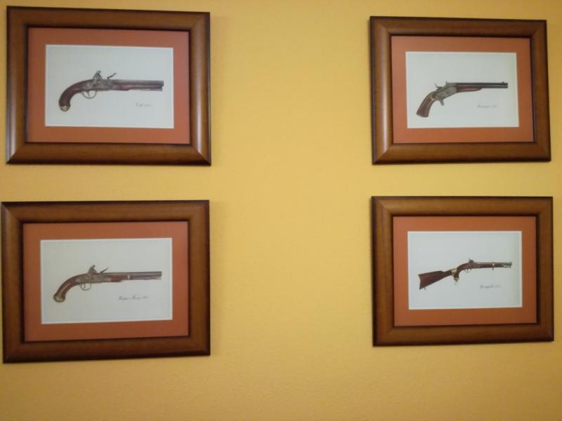 se trata de cuatro cuadros con láminas de armas clásicas. Muy decorativos y de nuestros gustos y puede que alguna señora trague, jejeje