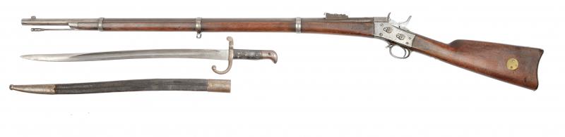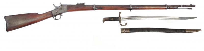 Este modelo tiene la peculiaridad de que está preparado para bayoneta de sección triangular, como el Remington español 1871(Oviedo) y tipo yatagan ( cuchillo de hoja cueva). Admite los dos montajes. Aparece en el libro "Spanish Rolling Block, the Basque made rifles of the Third Carlist Word" en las páginas 254 y 255, como ejemplos de Remington con sable-bayoneta, espada y bayoneta tipo yatagan. Se regalan dos ejemplares del libro con el arma.