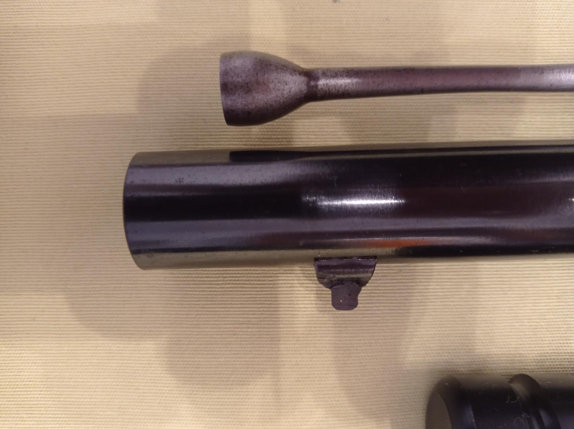 -Accesorio lavador para dicho fusil compuesto de chimenea con latiguillo de tubo flexible de plástico transparente el cual se podría colocar en una botella de refresco pequeña con agujero adecuado en el tapón para evacuar o realizar tipo succión, ideal para usar sin desmontar el cañón de la culata y poder hacer dicha limpieza en el campo de tiro.