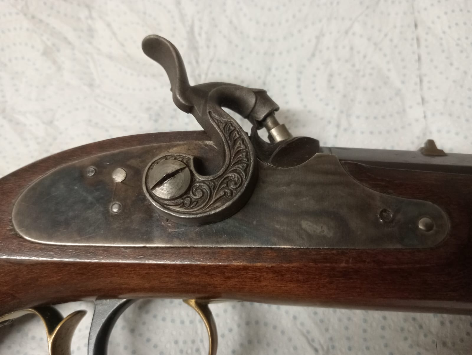 Hola. Ya he vendido la mayoría de las piezas al por menor. Me quedan tres oídos, un muelle de baquetero para arma de Ardesa, un rastrillo sin estrenar para llave de chispa de Ardesa, un parachispas para arma de pistón, un salvabocas de latón para baqueta, la contrapletina para rifle kentucky (estas dos piezas compradas en EE. UU. a Track of the Wolff) y un muelle real para pistola de duelo de Dikar.