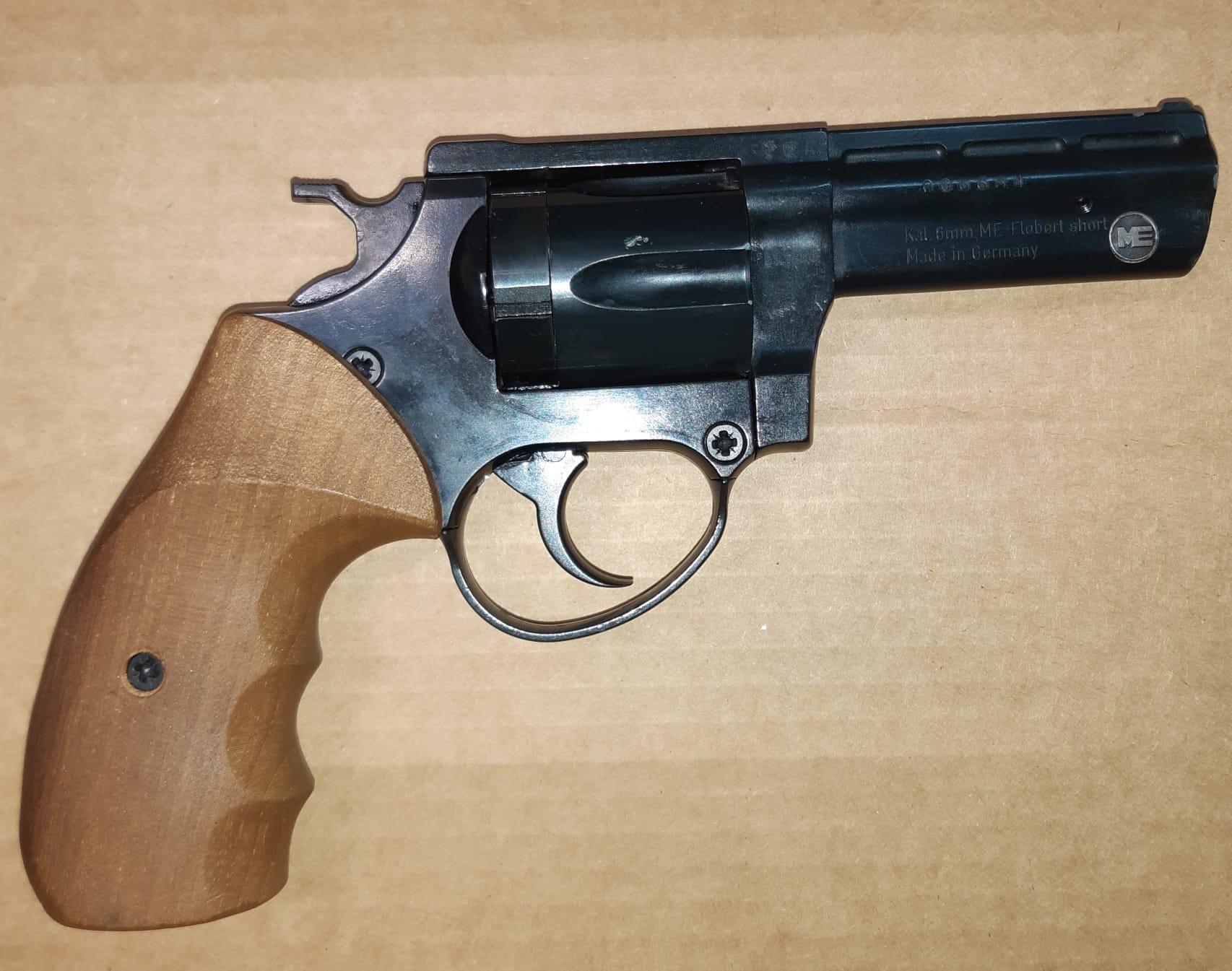 Revolver sistema Flobert cal. 6mm marca ME fabricación alemana guiado en AE, doy tres cajas de 100 unidades cada una y una empezada, 130€ portes a parte.