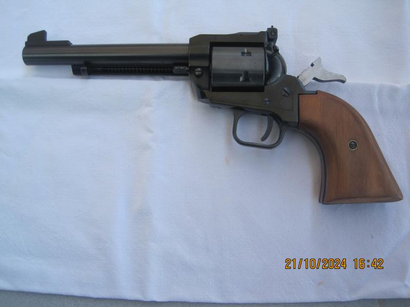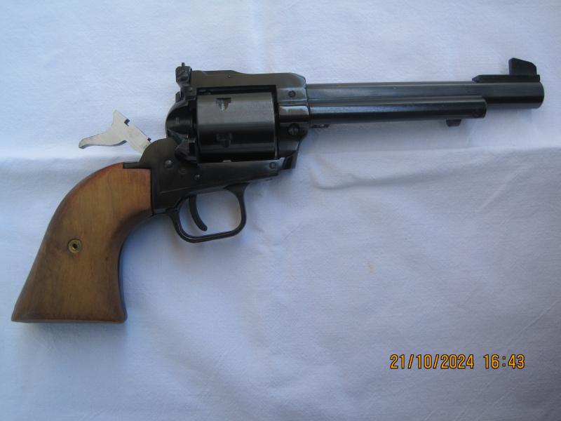 -- Revólver Simple acción, marca ME, modelo 600, calibre 6mm FLOBERT Corto, 6", Made in Germany, cilindro enterizo. Guiado con Licencia AE., lo vendo al tener otro similar.