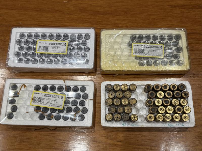 urnas tardes a todos, ahora le ha llegado el turno a mis rifles. El primero es un 1863 Sharps Sporting 32" de Pedersoli. Una auténtica belleza. Los dos rifles que tengo son por capricho ya que siempre he sido tirador de arma corta. en este caso se trata de un Sharp de cal .54 De cartucho de papel. Lo entrego con casquillos especiales para el para evitar hacer cartuchos de papel. Si la entrega es en mano también puedo entregar las balas que se ven en la foto, mandarlas costaría una pasta por su elevado peso. Por todo el conjunto pido 1050 euros envío a parte.