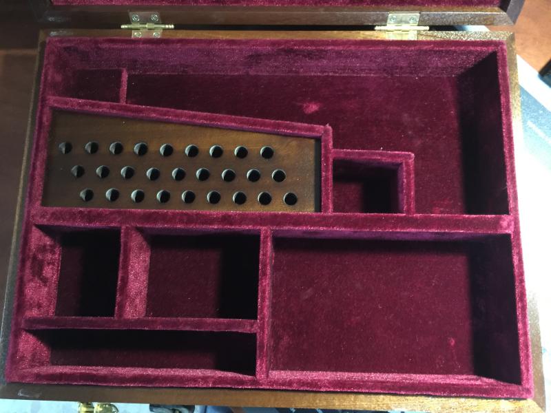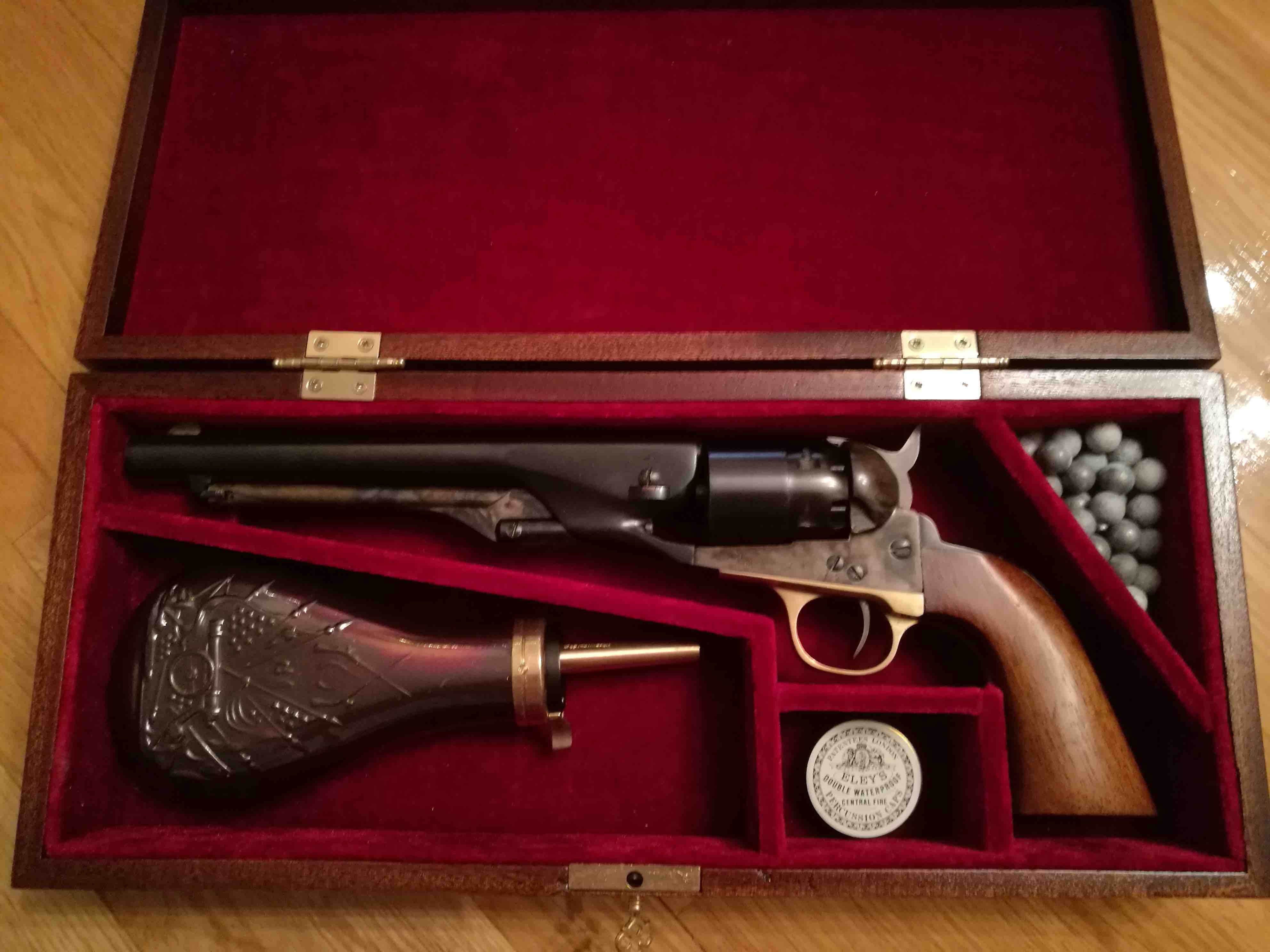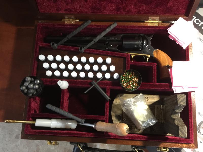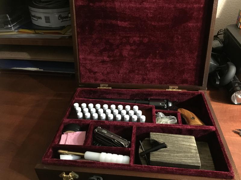 Esta para un Remington 1858. con tercioelo azul oscuro, y cerradura embutida. Esta se quedó en Almeria, gracias Juan A.