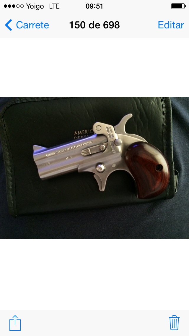 Vendo American Derringer del cal. 22lr en acero inox y cachas de madera esta manufacturada en waco Texas completamente a mano tiene una funda de interior en piel de carnero y su bolsa de transporte es de una cálidad excepcional, es nueva actualmente está guiada en Ae y tiene el Bope y el certificado para ponerla en el libro con la autorización de casquillo metalico, el que la conozca sabrá que hay muy pocas, la vendo por 1250€