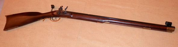 Este es el rifle "Scout" de Pedersoli, de chispa, del calibre 50 (Pensylvania carabina) al igual que el otro le cambié el punto y la mira por diópter y túnel (aunque este no puede llevar la mira de circunferencia sino una de mira recta y de abajo a arriba. Está en buenas condiciones, y también se hacen bastantes puntos con él.