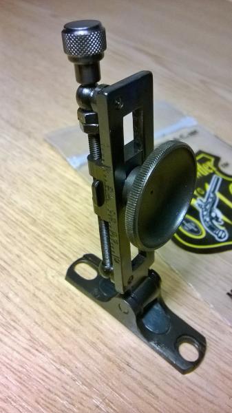 Vendo diopter Pedersoli, con ajuste en altura y deriva, modelo USA445, distancia entre los centros de los orificios de sujeción 4cm, ideal para montar en un Hawken (Donde estaba montado).
