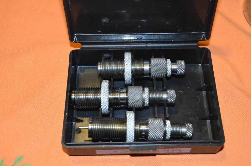 Se vende con un juego de dies de dela marca 4D. Lamentablemente no dispongo de más vainas de este calibre, puesto que las vendí con otro arma del mismo calibre. se fabrican fácilmente recortándolas del 348 Winchester.