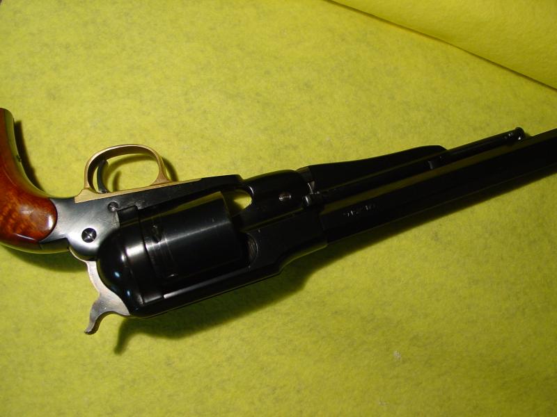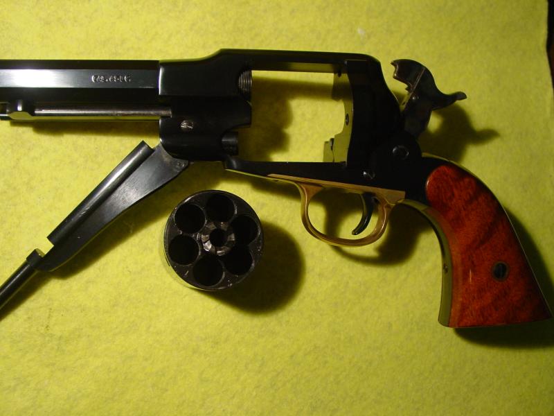 Me ha dejado mi amigo un Uberti Remington 1858 de avancarga, idéntico en Conversion y su tambor entra y se acciona perfectamente en el último al retirar la pieza que lo transforma en retrocarga.