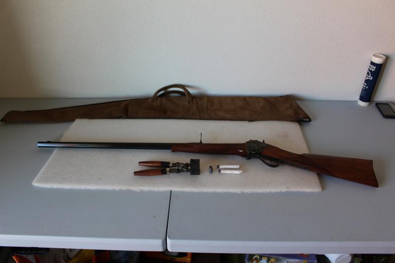 2.- Rifle Sharps 45. con cañón de 32" de Pedersoli. En un estado excelente, salvo por un pequeño rayón en el pavón del cañón y por a mi parecer la extrema dureza de bloque al cerrar y bajar la palanca. 500E VENDIDO